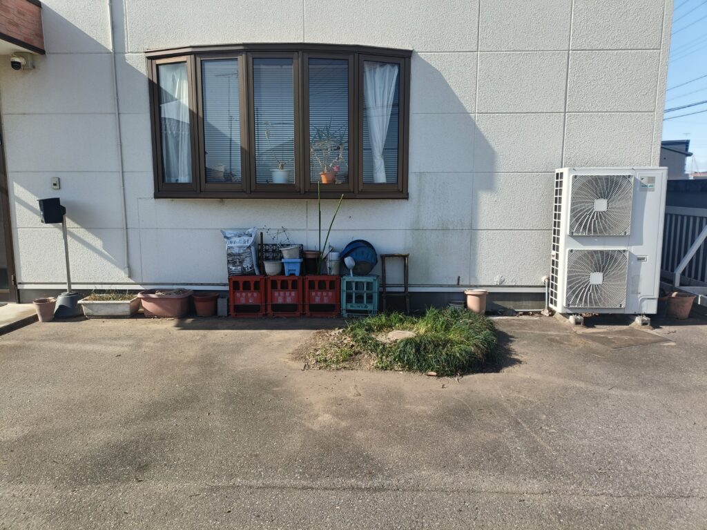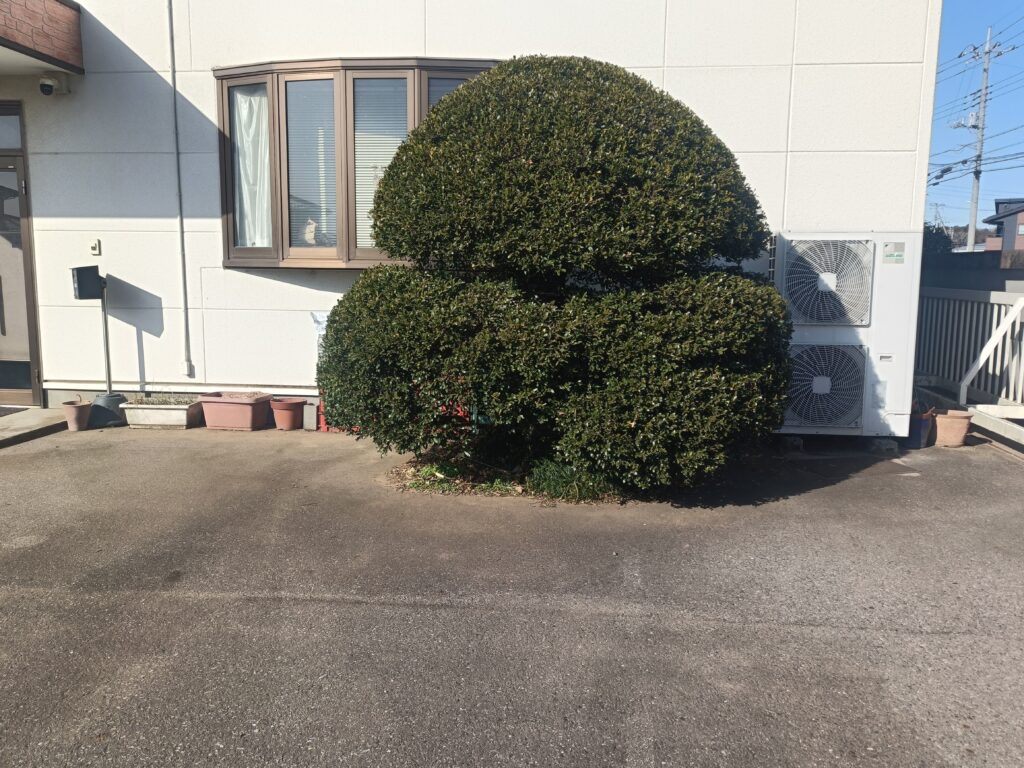 伐採後は、車の出し入れがしやすくなり、全体的にすっきりとした印象になりました。