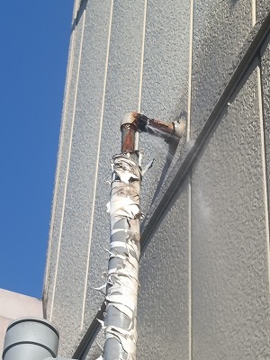 翌朝あらためて配管をやり直し、あわせて老朽化していた防熱材も新しいものに交換しました。