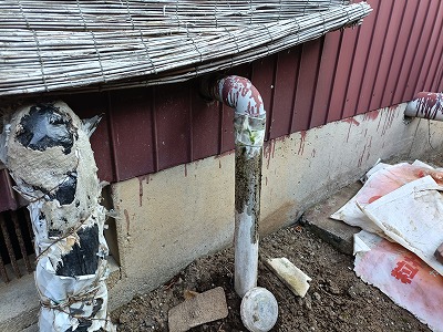 2階へ向かう給水ラインの途中から、水が噴き出している状態でした。